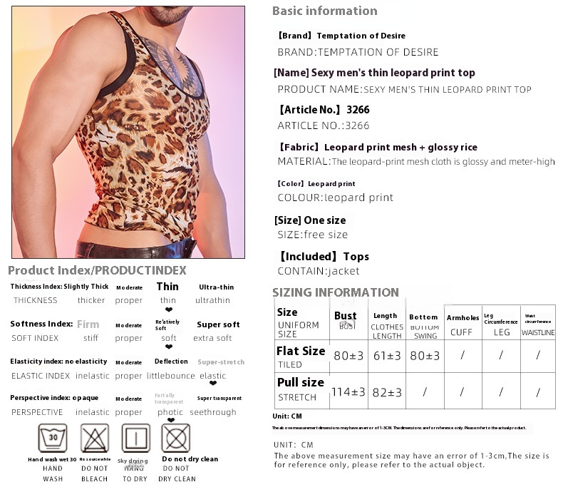 Breathable Sexy Wild Leopard Print Men's Sexy Lingerie